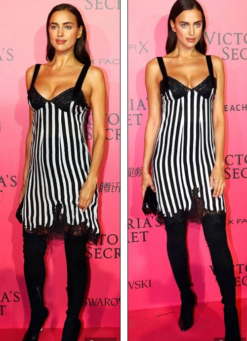 Trong Victoria's Secret Show 2016, cả hai bộ đồ nội y Irina Shayk mặc đều có chi tiết che phần bụng.